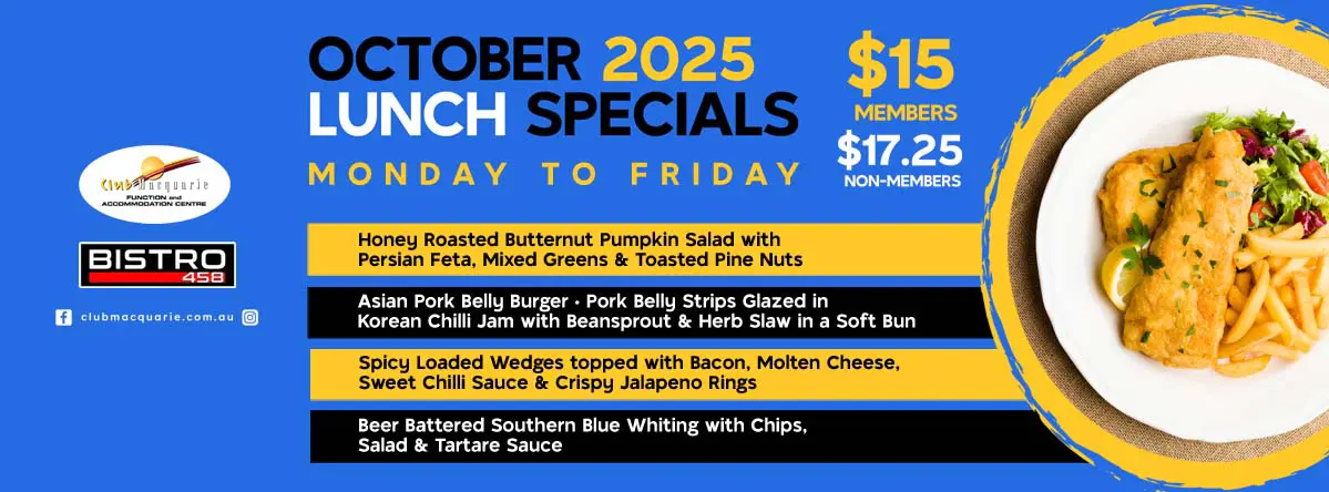 When dining Lake Macquarie, dine with Club Macquarie! From fine food to casual eats, Bistro 458 at Club Macquarie serves an array of delicious dishes. With great prices across all our menus, you can tuck into traditional baked dinners, or savour the delights of our more contemporary dishes. Bistro 458 is open 7 days a week for Breakfast, Lunch and Dinner.